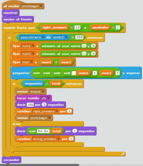 1- Analizar la estructura de los siguientes bloques para ver el comportamiento del Zombi que ataca.